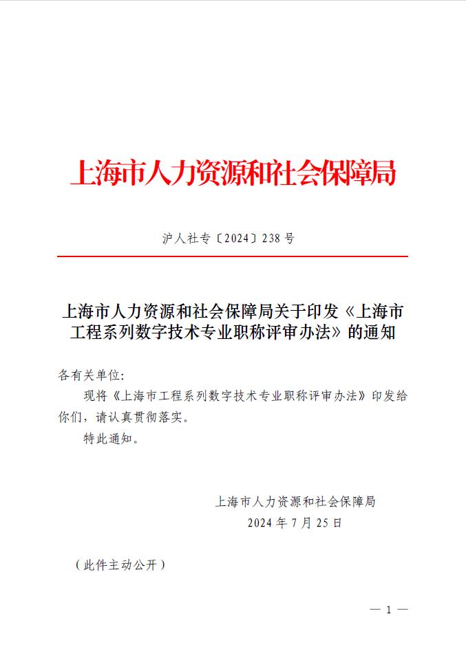 關(guān)于印發(fā)《上海市工程系列數(shù)字技術(shù)專業(yè)職稱評(píng)審辦法》的通知
