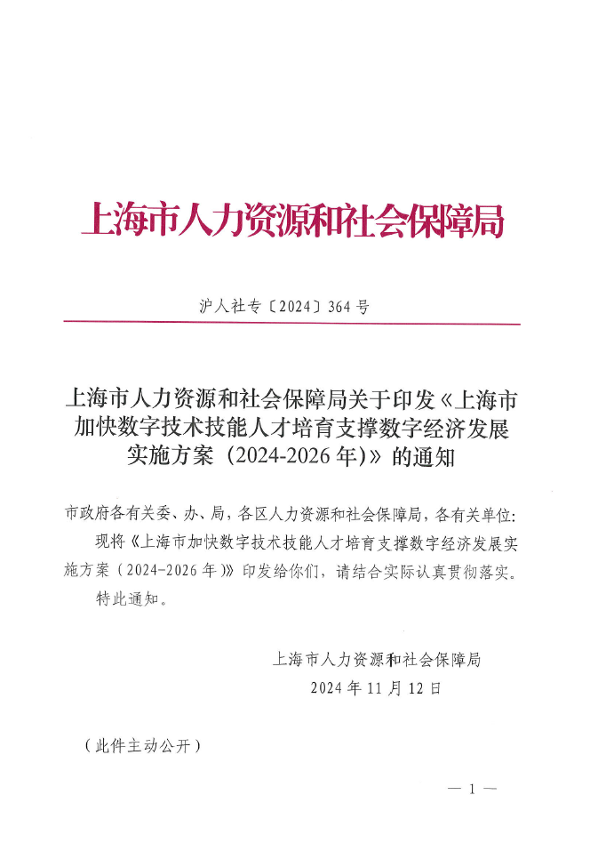 為深入貫徹落實(shí)人力資源社會(huì)保障部等9部門《加快數(shù)字人才培育支撐數(shù)字經(jīng)濟(jì)發(fā)展行動(dòng)方案(2024-2026年)》(人社部發(fā)〔2024〕37號)等文件要求,加快培養(yǎng)能夠創(chuàng)造新質(zhì)生產(chǎn)力的數(shù)字技術(shù)技能人才隊(duì)伍,進(jìn)一步發(fā)揮數(shù)字技術(shù)技能人才支撐數(shù)字經(jīng)濟(jì)的基礎(chǔ)性作用,為上海全面推進(jìn)城市數(shù)字化轉(zhuǎn)型、打造具有世界影響力的國際數(shù)字之都提供有力人才保障,制定本方案。