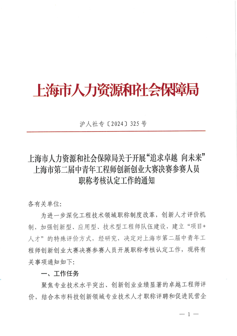 ??為進(jìn)一步深化工程技術(shù)領(lǐng)域職稱制度改革,創(chuàng)新人才評(píng)價(jià)機(jī)制,加強(qiáng)創(chuàng)新型、應(yīng)用型、技術(shù)型工程師隊(duì)伍建設(shè),建立“項(xiàng)目+人才”的特殊評(píng)價(jià)方式,經(jīng)研究,決定對(duì)上海市第二屆中青年工程師創(chuàng)新創(chuàng)業(yè)大賽決賽參賽人員開展職稱考核認(rèn)定工作,現(xiàn)將有關(guān)事項(xiàng)通知如下: