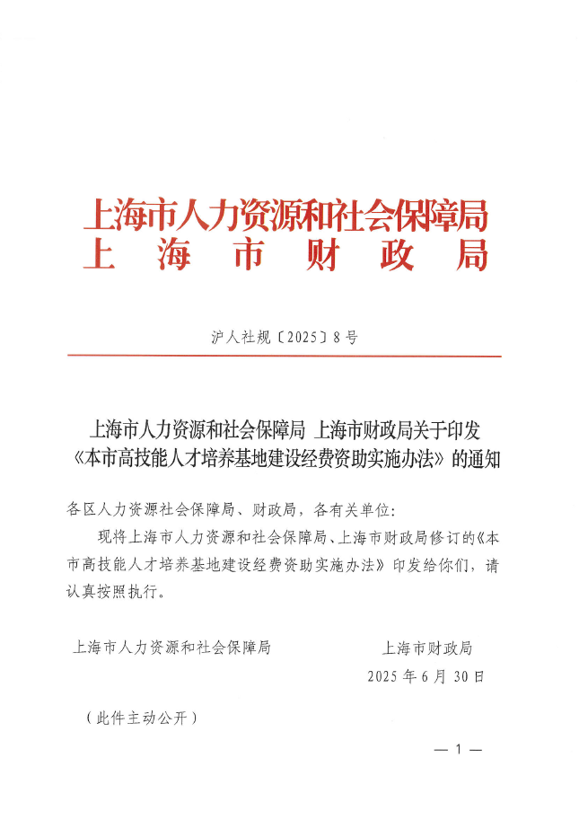 ??為進(jìn)一步加強(qiáng)技能人才隊(duì)伍建設(shè),為本市重點(diǎn)產(chǎn)業(yè)和新質(zhì)生產(chǎn)力發(fā)展提供有力的技能人才支撐,根據(jù)中共中央辦公廳、國務(wù)院辦公廳《關(guān)于加強(qiáng)新時(shí)代高技能人才隊(duì)伍建設(shè)的意見》、市財(cái)政局等四部門《關(guān)于印發(fā)修訂后〈關(guān)于進(jìn)一步完善地方教育附加資金分配使用辦法加強(qiáng)企業(yè)職工職業(yè)培訓(xùn)的實(shí)施意見〉的通知》(滬財(cái)社〔2025〕32號),本市按照“聚焦需求、建運(yùn)結(jié)合”的原則,對經(jīng)認(rèn)定的高技能人才培養(yǎng)基地(以下簡稱“培養(yǎng)基地”)給予建設(shè)經(jīng)費(fèi)資助。為規(guī)范資金使用管理,提高資金使用效益,制定本實(shí)施辦法。