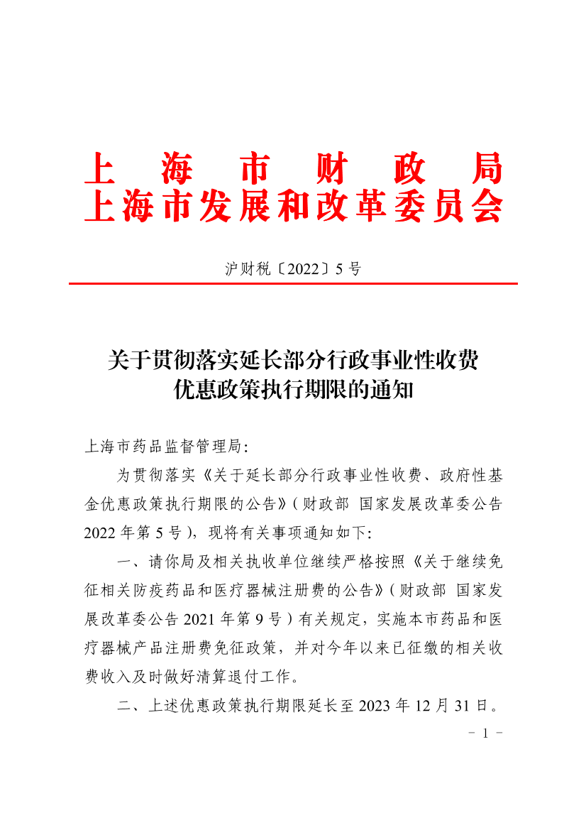 ??為貫徹落實《關(guān)于延長部分行政事業(yè)性收費、政府性基金優(yōu)惠政策執(zhí)行期限的公告》(財政部 國家發(fā)展改革委公告2022年第5號),現(xiàn)將有關(guān)事項通知如下: