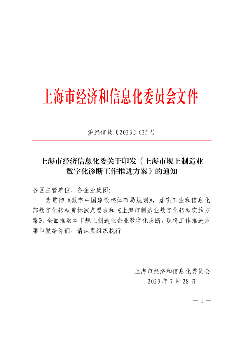 ??為貫徹《數(shù)字中國建設(shè)整體布局規(guī)劃》,落實(shí)工業(yè)和信息化部數(shù)字化轉(zhuǎn)型貫標(biāo)試點(diǎn)要求和《上海市制造業(yè)數(shù)字化轉(zhuǎn)型實(shí)施方案》,全面推動本市規(guī)上制造業(yè)企業(yè)數(shù)字化診斷,現(xiàn)將工作推進(jìn)方案印發(fā)給你們,請認(rèn)真組織執(zhí)行。