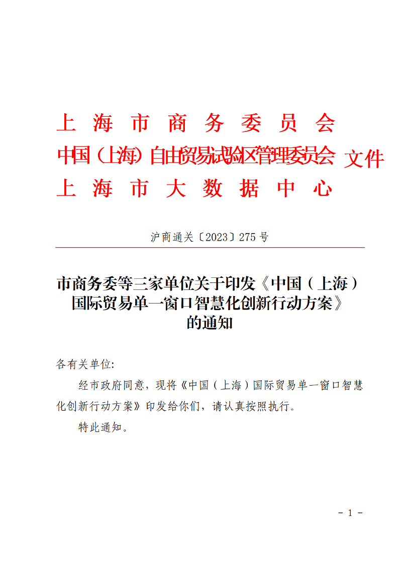 ??經(jīng)市政府同意,現(xiàn)將《中國(guó)(上海)國(guó)際貿(mào)易單一窗口智慧化創(chuàng)新行動(dòng)方案》印發(fā)給你們,請(qǐng)認(rèn)真按照?qǐng)?zhí)行。