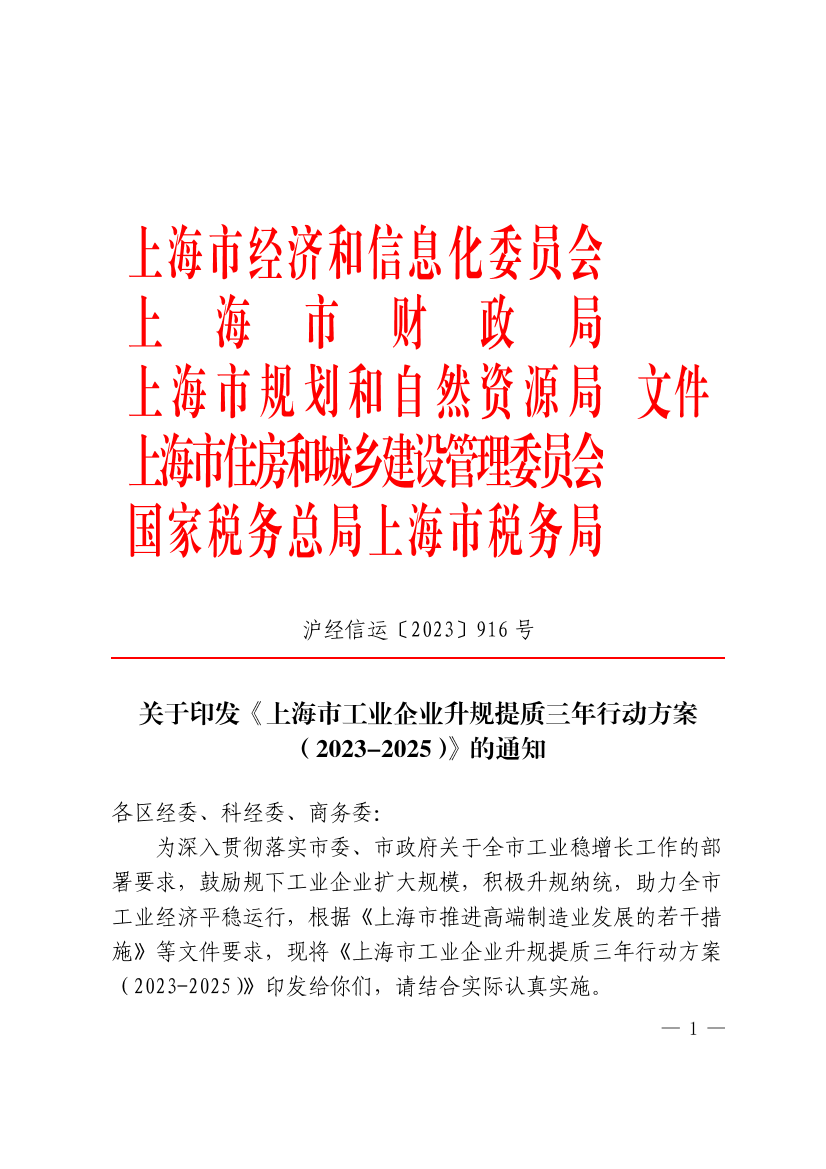 ??為深入貫徹落實(shí)市委、市政府關(guān)于全市工業(yè)穩(wěn)增長(zhǎng)工作的部署要求,鼓勵(lì)規(guī)下工業(yè)企業(yè)擴(kuò)大規(guī)模,積極升規(guī)納統(tǒng),助力全市工業(yè)經(jīng)濟(jì)平穩(wěn)運(yùn)行,根據(jù)《上海市推進(jìn)高端制造業(yè)發(fā)展的若干措施》等文件要求,現(xiàn)將《上海市工業(yè)企業(yè)升規(guī)提質(zhì)三年行動(dòng)方案(2023-2025)》印發(fā)給你們,請(qǐng)結(jié)合實(shí)際認(rèn)真實(shí)施。