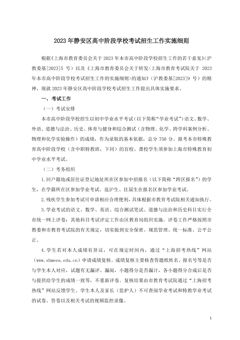 2023年靜安區(qū)高中階段學??荚囌猩ぷ鲗嵤┘殑t