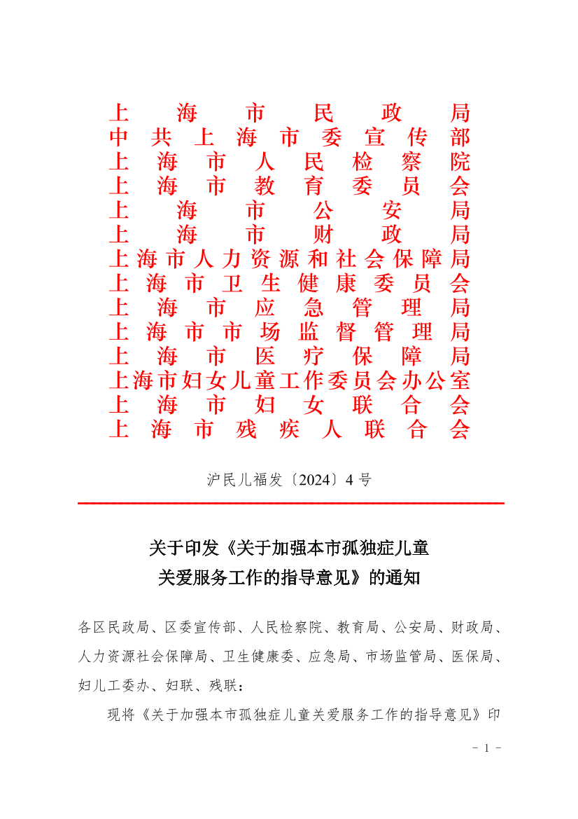 關(guān)于印發(fā)《關(guān)于加強本市孤獨癥兒童關(guān)愛服務(wù)工作的指導(dǎo)意見》的通知