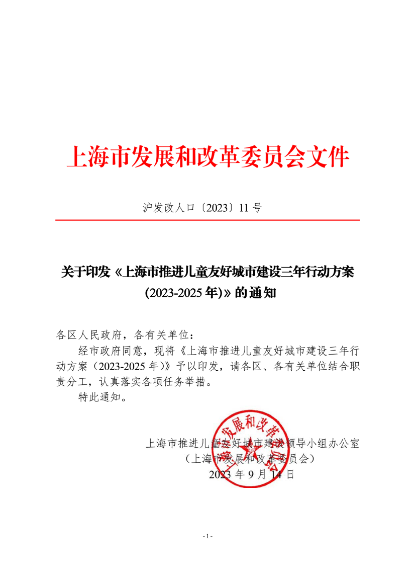 上海市推進兒童友好城市建設三年行動方案(2023-2025年)
