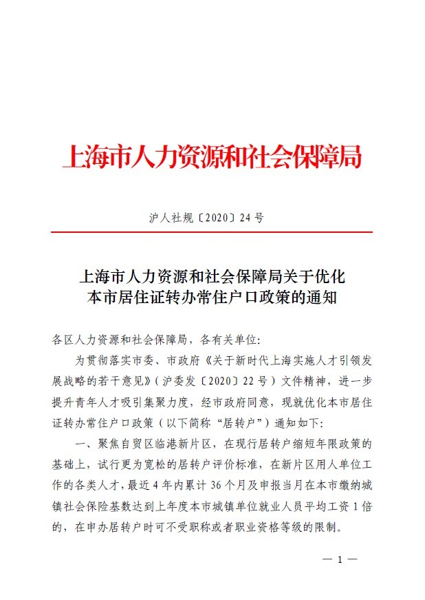 ??為貫徹落實(shí)市委、市政府《關(guān)于新時(shí)代上海實(shí)施人才引領(lǐng)發(fā)展戰(zhàn)略的若干意見》(滬委發(fā)〔2020〕22號(hào))文件精神,進(jìn)一步提升青年人才吸引集聚力度,經(jīng)市政府同意,現(xiàn)就優(yōu)化本市居住證轉(zhuǎn)辦常住戶口政策(以下簡(jiǎn)稱“居轉(zhuǎn)戶”)通知如下: