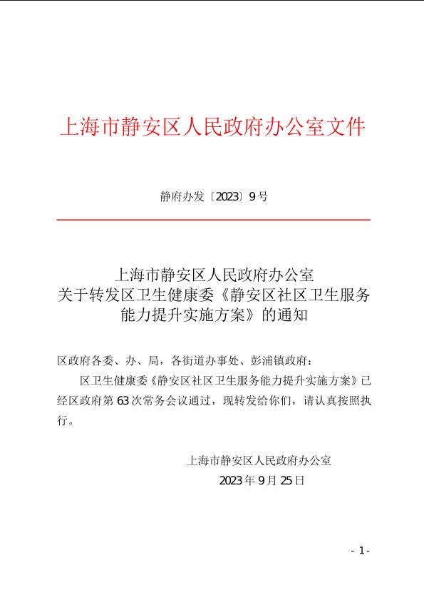 靜安區(qū)社區(qū)衛(wèi)生服務(wù)能力提升實(shí)施方案