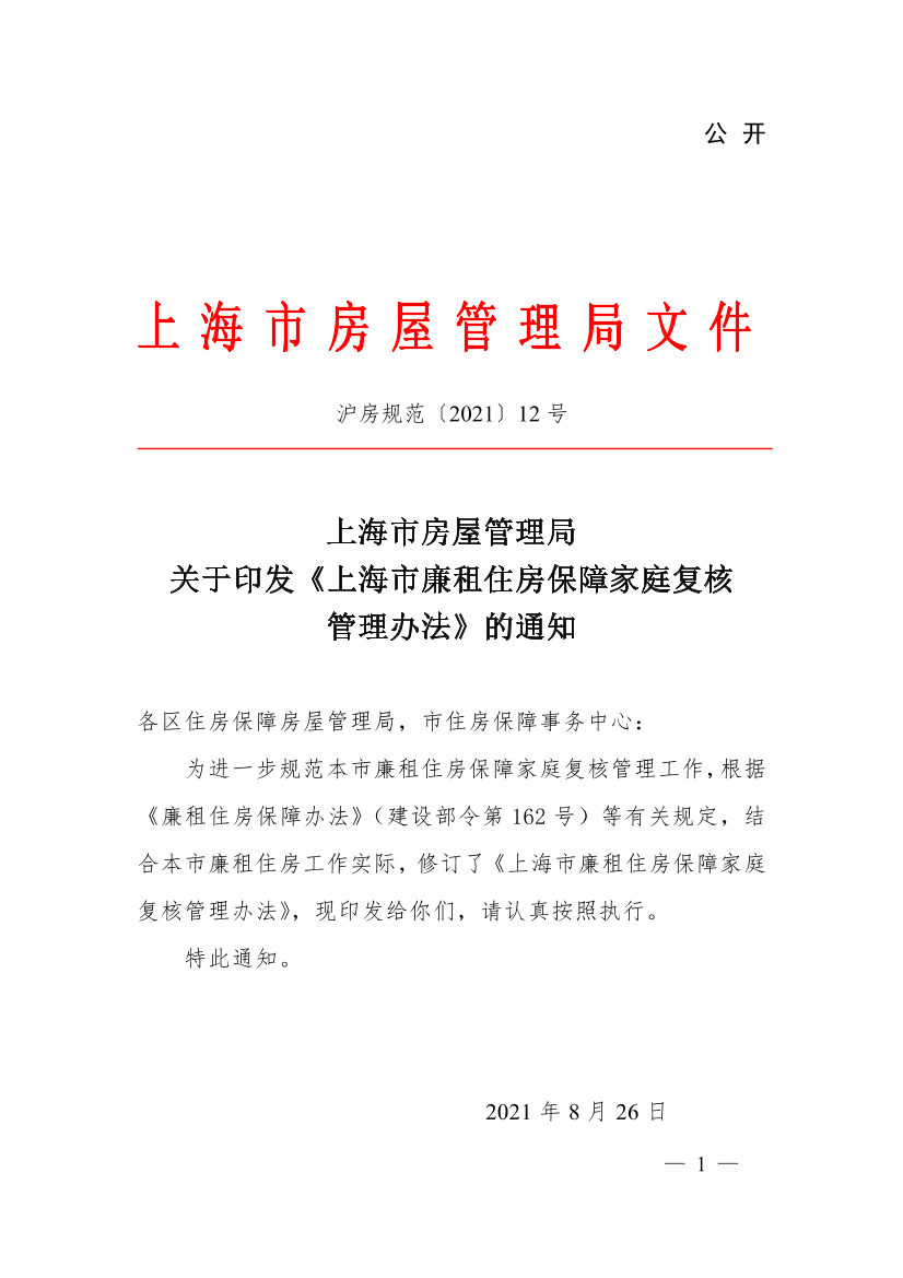關(guān)于印發(fā)《上海市廉租住房保障家庭復(fù)核管理辦法》的通知