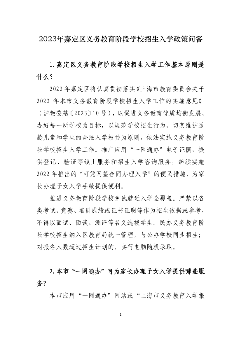 ??2023年嘉定區(qū)義務教育階段學校招生入學政策問答