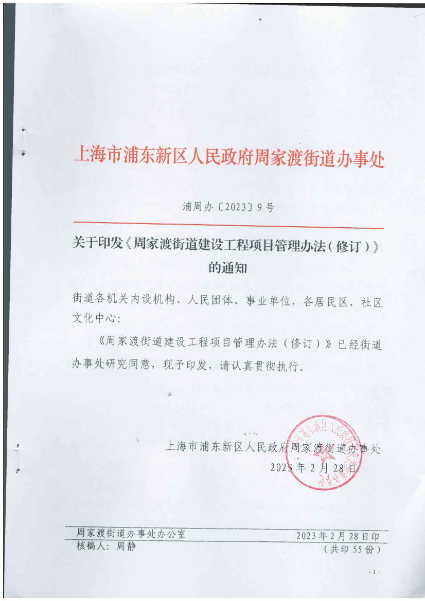 關(guān)于印發(fā)《周家渡街道建設(shè)工程項目管理辦法(修訂)》的通知