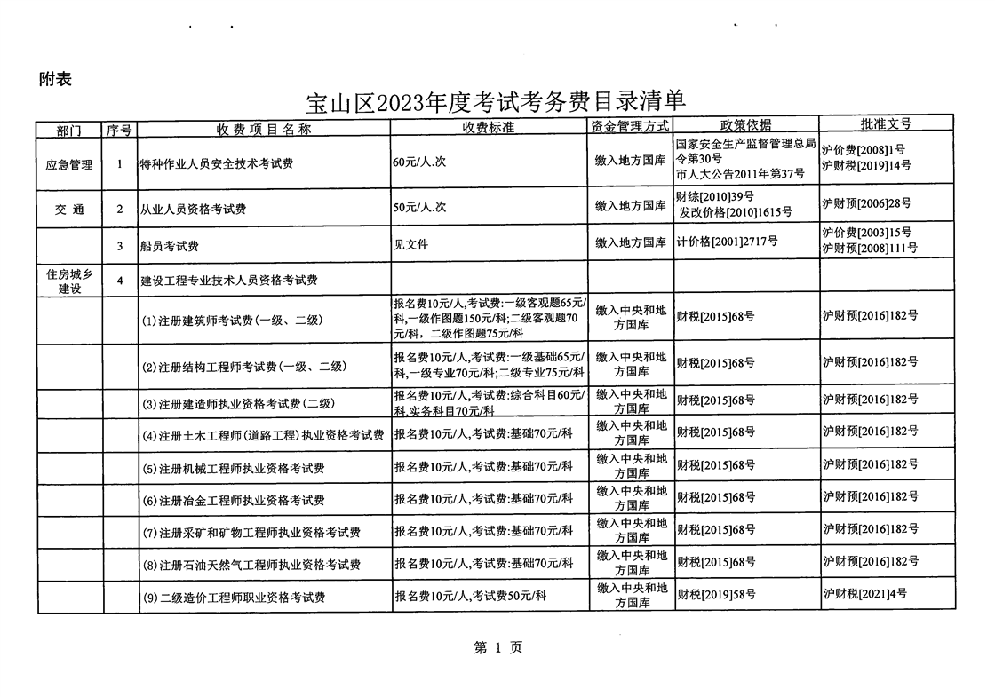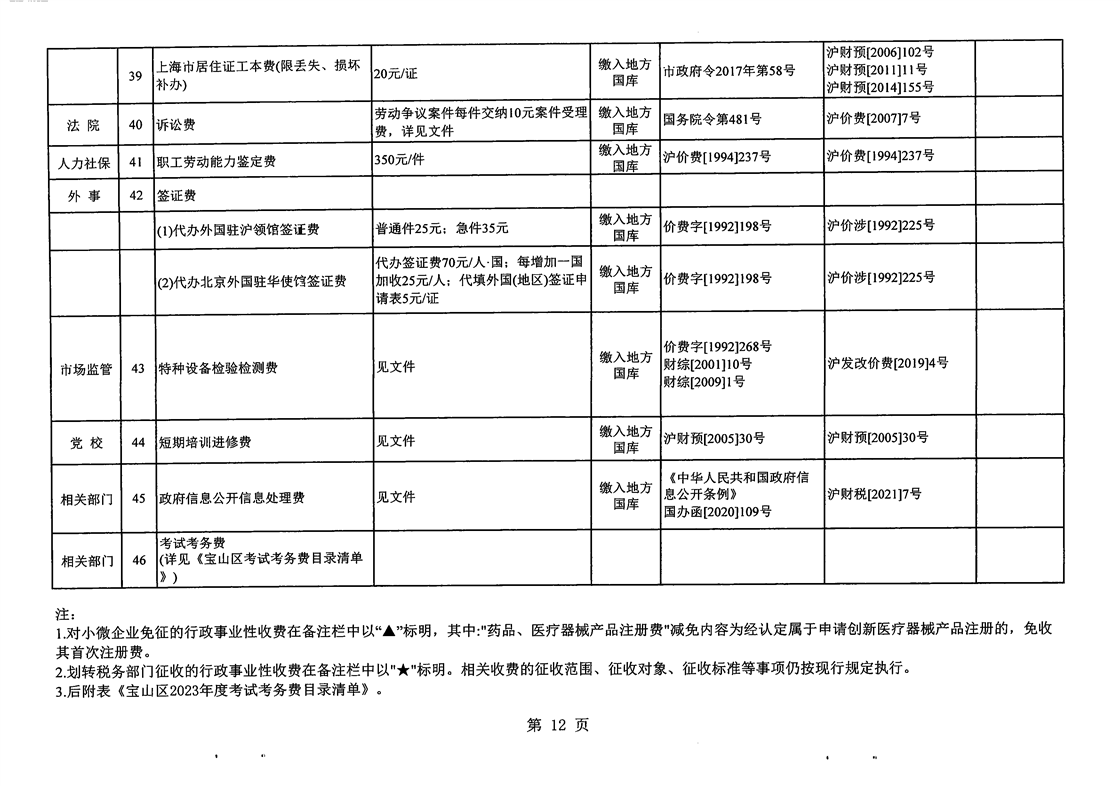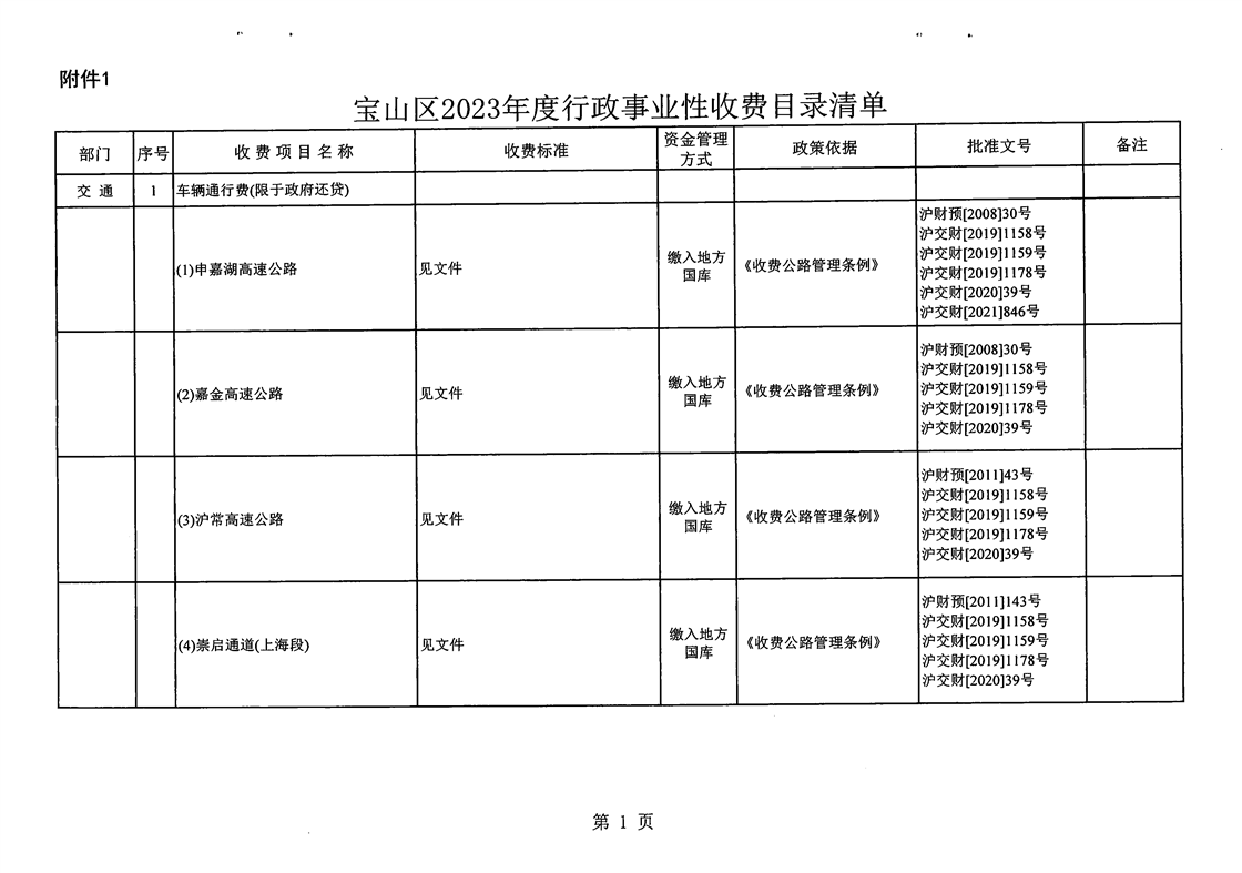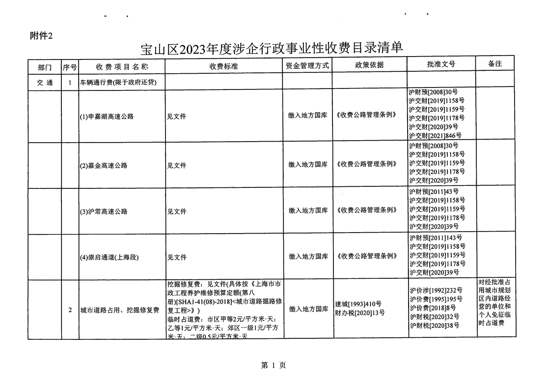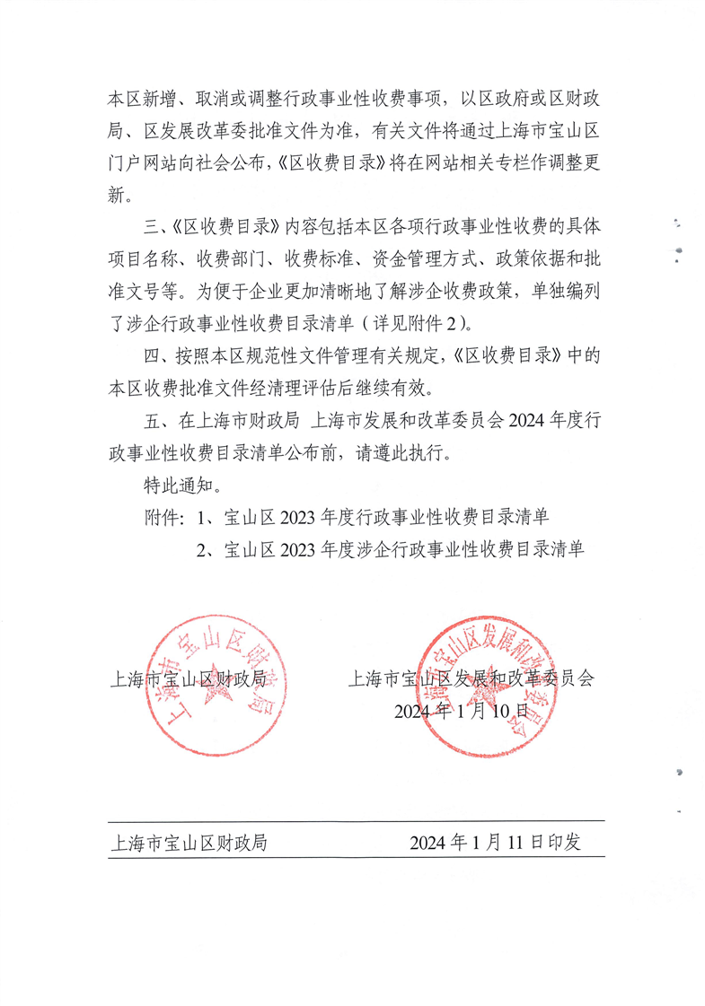關(guān)于公布寶山區(qū)2023年度行政事業(yè)性收費(fèi)目錄清單的通知