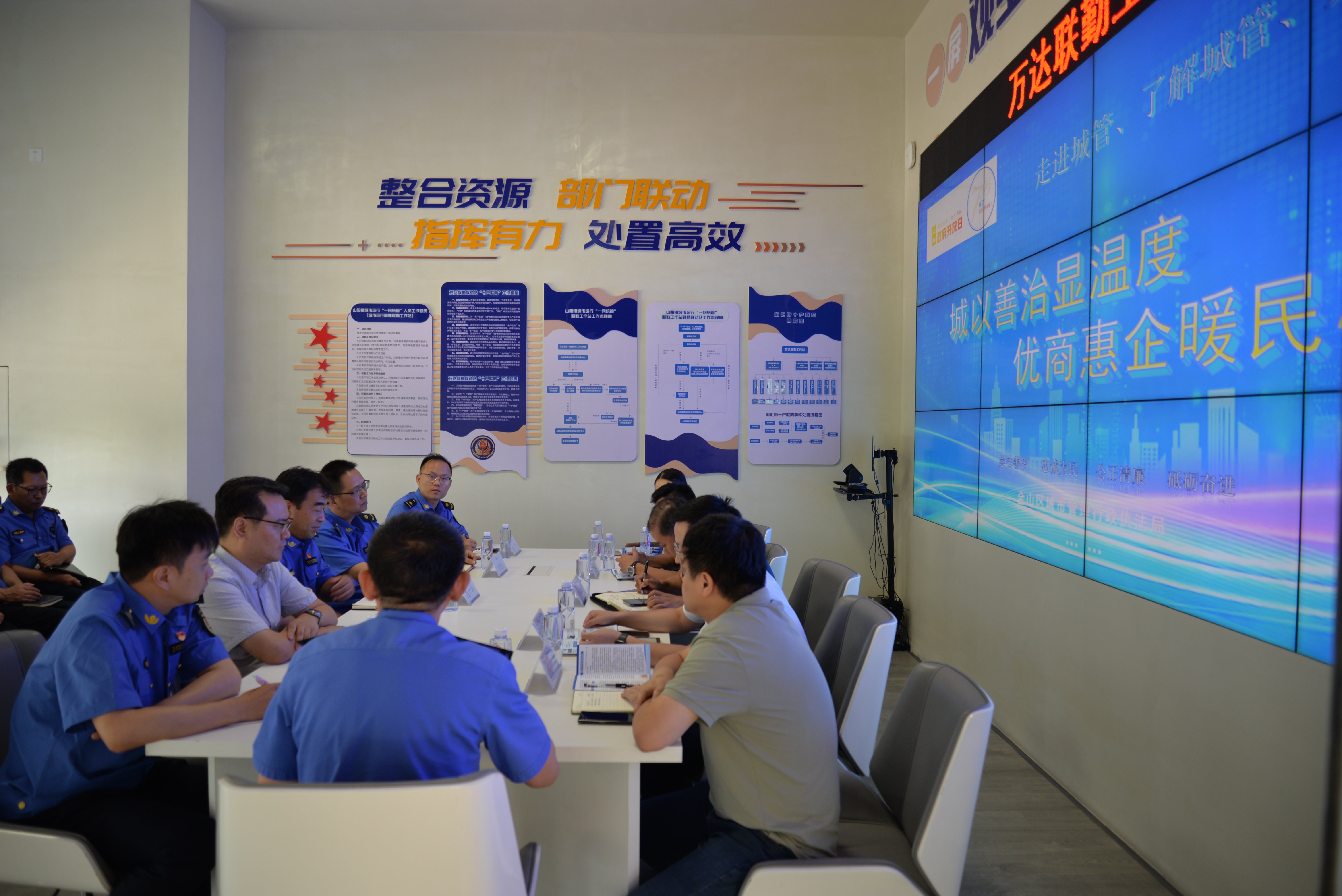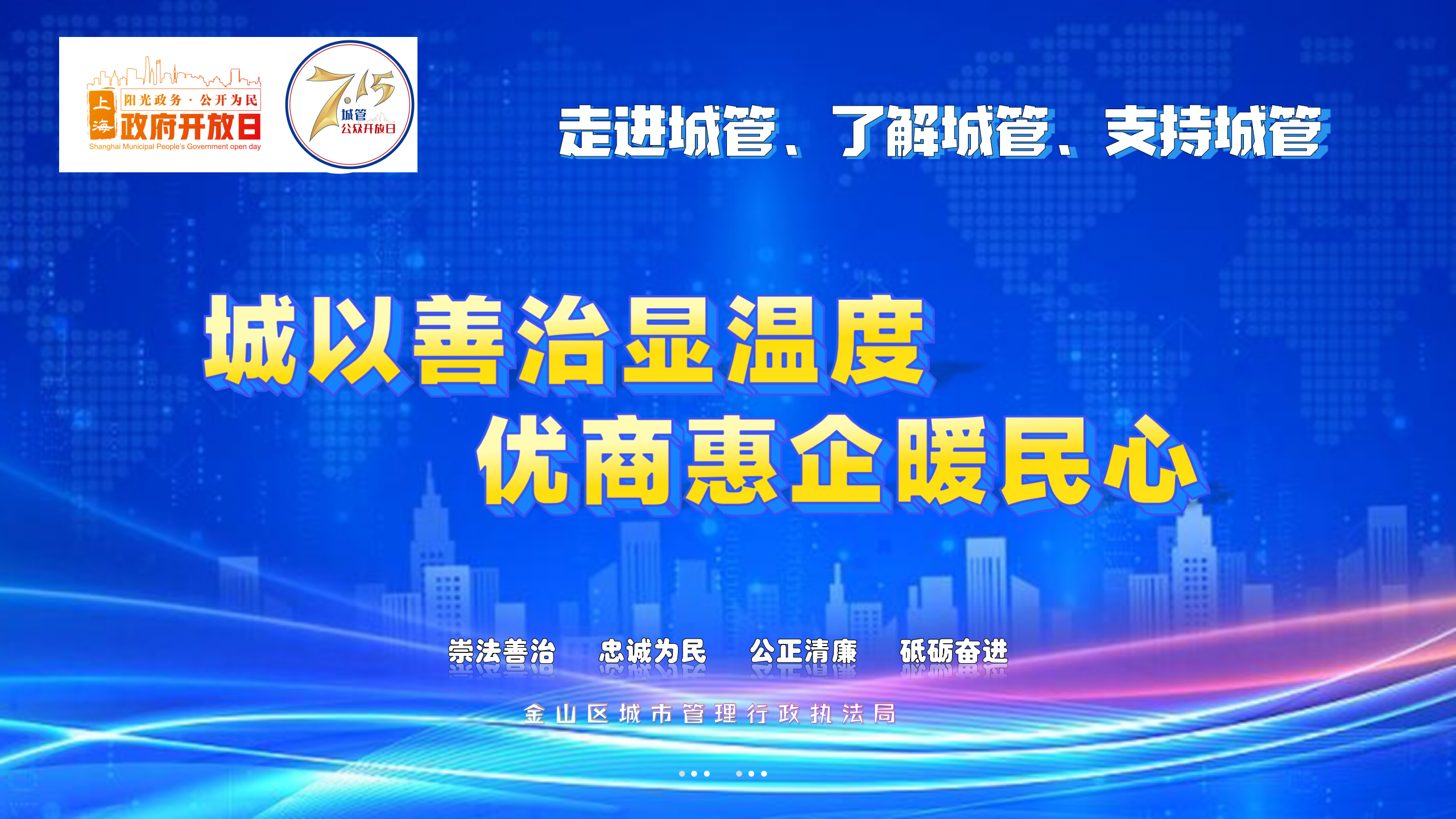??為進(jìn)一步營造良好的營商環(huán)境,促進(jìn)廣大市民群眾走進(jìn)城管、了解城管、支持城管,推動(dòng)城管執(zhí)法高質(zhì)量發(fā)展,7月15日下午,在山陽鎮(zhèn)萬達(dá)聯(lián)勤工作站,金山區(qū)城管執(zhí)法局組織開展了“城以善治顯溫度優(yōu)商惠企暖民心”為主題的“7·15城管公眾開放日”活動(dòng)。