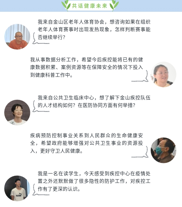 ??在座談會(huì)上,市民代表們圍繞疫情防控、醫(yī)防融合、健康科普等話題踴躍提問(wèn)、積極獻(xiàn)策,中心(所)分管領(lǐng)導(dǎo)一一做出細(xì)致解答和回應(yīng)。現(xiàn)場(chǎng)氣氛熱烈,面對(duì)面溝通進(jìn)一步增強(qiáng)了公眾對(duì)公共衛(wèi)生工作的理解與信任。