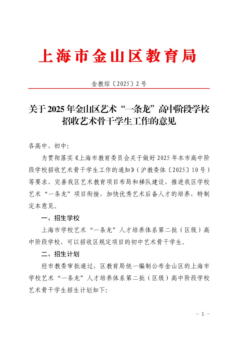 ??為貫徹落實(shí)《上海市教育委員會關(guān)于做好2025年本市高中階段學(xué)校招收藝術(shù)骨干學(xué)生工作的通知》(滬教委體〔2025〕10號)等要求,完善我區(qū)藝術(shù)教育項(xiàng)目布局和梯隊建設(shè),推進(jìn)我區(qū)學(xué)校藝術(shù)“一條龍”項(xiàng)目銜接,加快優(yōu)秀藝術(shù)后備人才的培養(yǎng),特制定本意見。