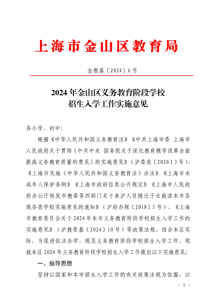 2024年金山區(qū)義務(wù)教育階段學(xué)校招生入學(xué)工作實(shí)施意見