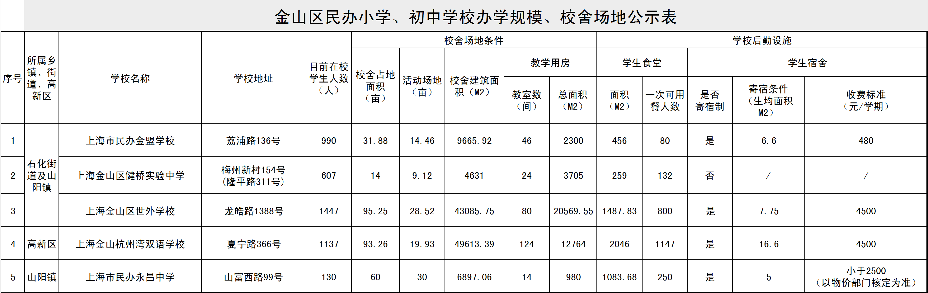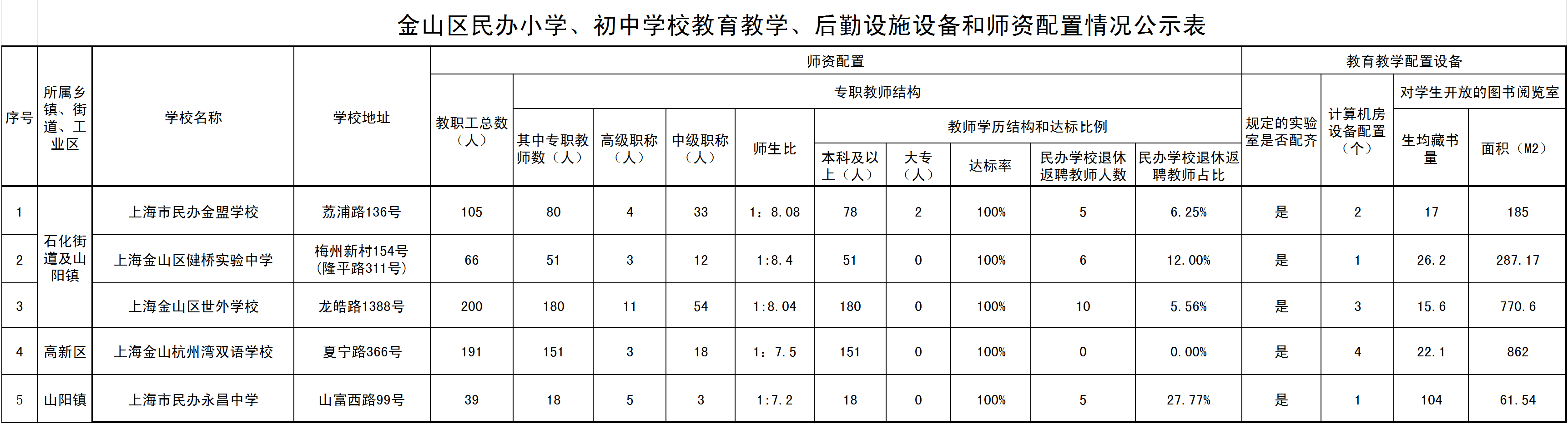 2024年金山區(qū)義務(wù)教育階段各民辦學(xué)校辦學(xué)規(guī)模、校舍場(chǎng)地、教育教學(xué)、后勤設(shè)施設(shè)備和師資配置情況公示表