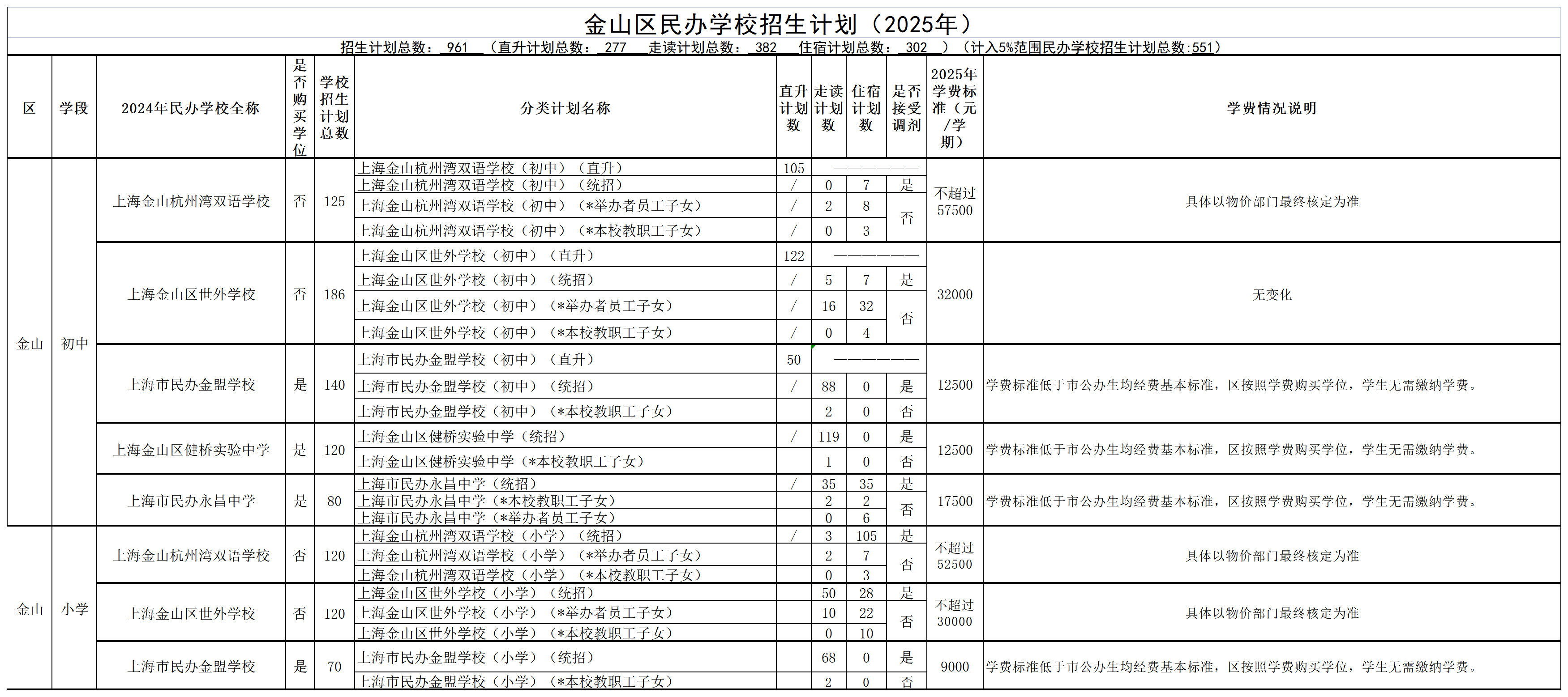 2025年金山區(qū)民辦學(xué)校招生分類計(jì)劃及學(xué)費(fèi)情況公示