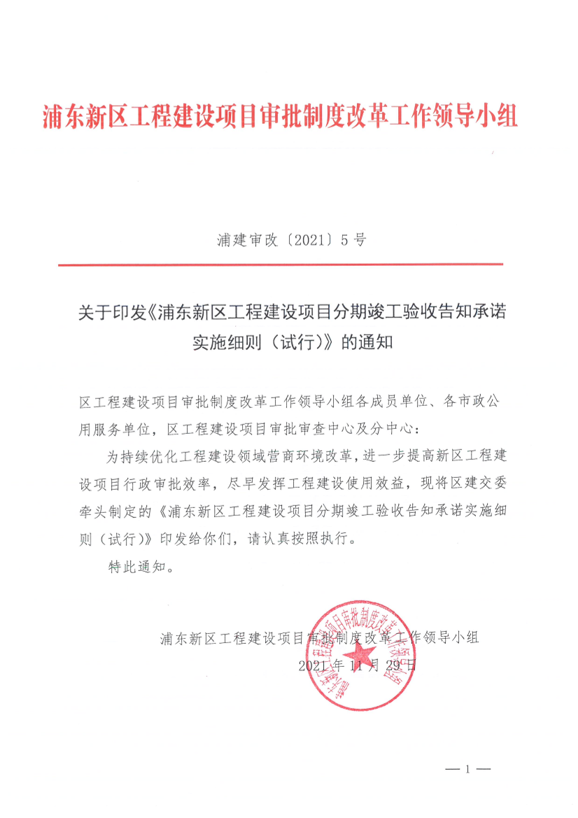 ??為深化“放管服”改革和優(yōu)化營商環(huán)境,進(jìn)一步提高浦東新區(qū)工程建設(shè)項(xiàng)目行政審批效率,盡早發(fā)揮工程建設(shè)項(xiàng)目使用效益,根據(jù)《上海市行政審批告知承諾管理辦法》《關(guān)于進(jìn)一步深化行政審批制度改革加快推進(jìn)重大項(xiàng)目建設(shè)的若干措施》等文件精神,結(jié)合浦東新區(qū)綜合竣工驗(yàn)收實(shí)際,制定本細(xì)則。
