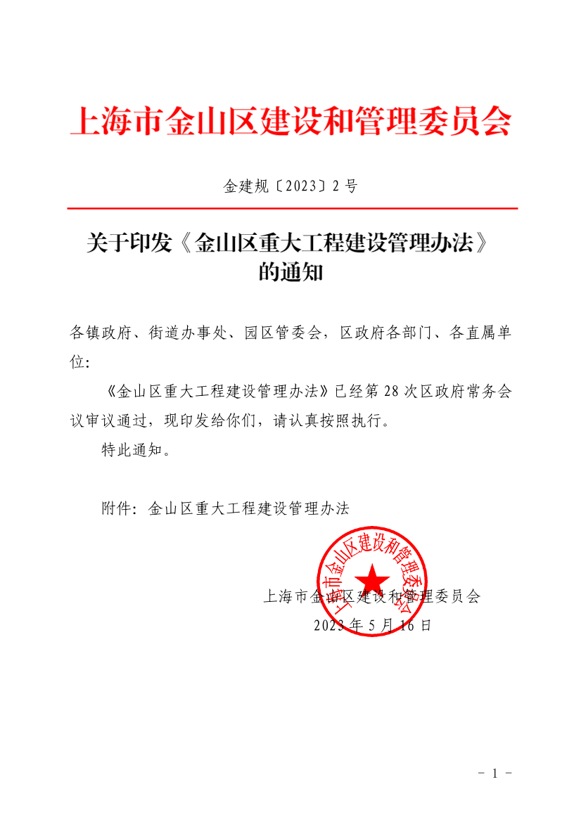 關(guān)于印發(fā)《金山區(qū)重大工程建設(shè)管理辦法》 的通知