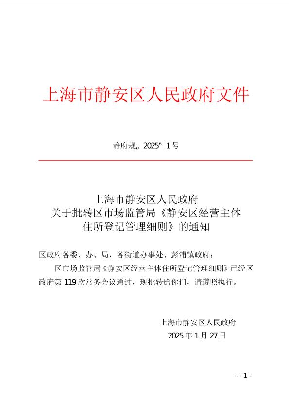 靜安區(qū)經(jīng)營主體住所登記管理細(xì)則