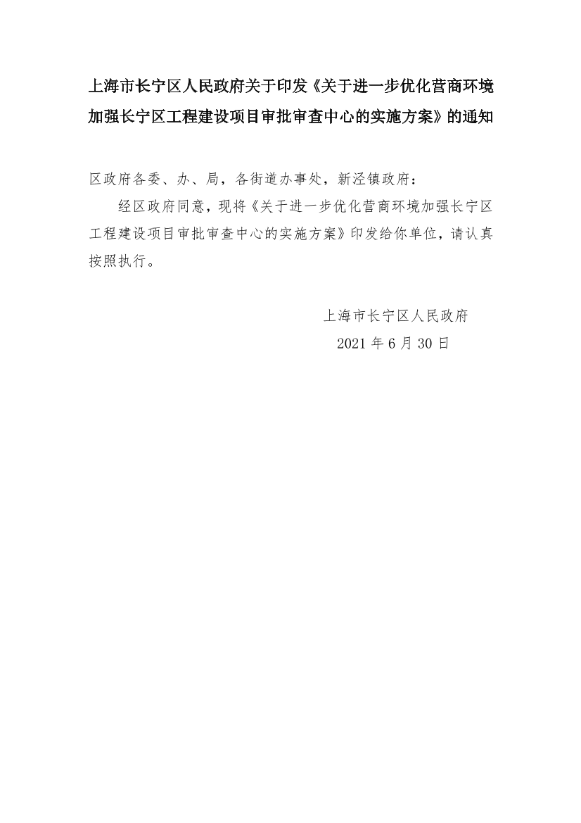 關(guān)于進(jìn)一步優(yōu)化營(yíng)商環(huán)境 加強(qiáng)長(zhǎng)寧區(qū)工程建設(shè)項(xiàng)目審批審查中心的實(shí)施方案