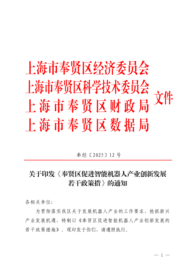 奉賢區(qū)促進(jìn)智能機(jī)器人產(chǎn)業(yè)創(chuàng)新發(fā)展若干政策措施