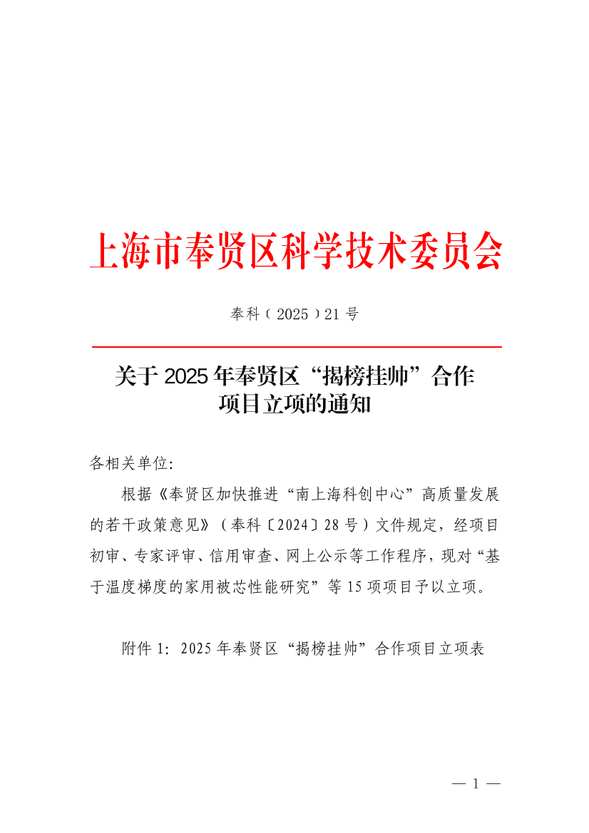 ??附件1:2025年奉賢區(qū)“揭榜掛帥”合作項(xiàng)目立項(xiàng)表