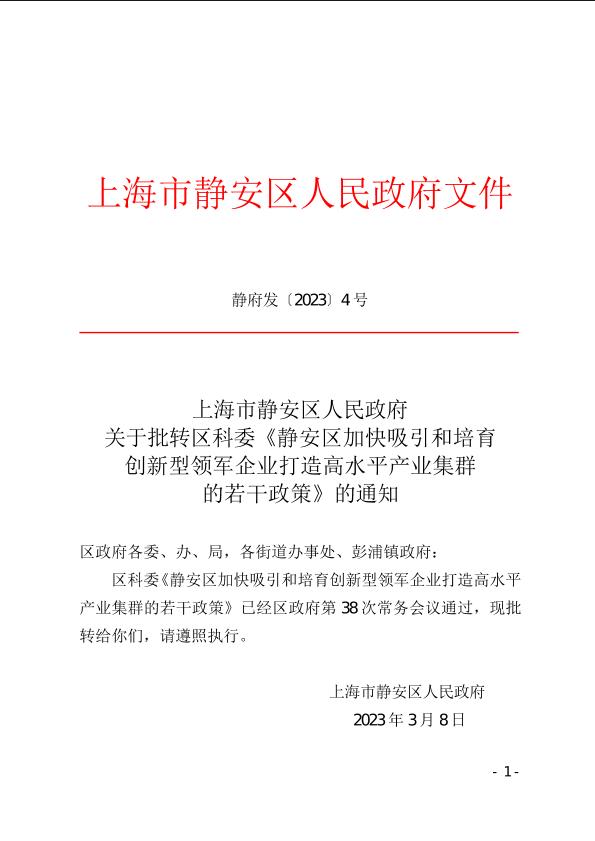 靜安區(qū)加快吸引和培育創(chuàng)新型領(lǐng)軍企業(yè)打造高水平產(chǎn)業(yè)集群的若干政策