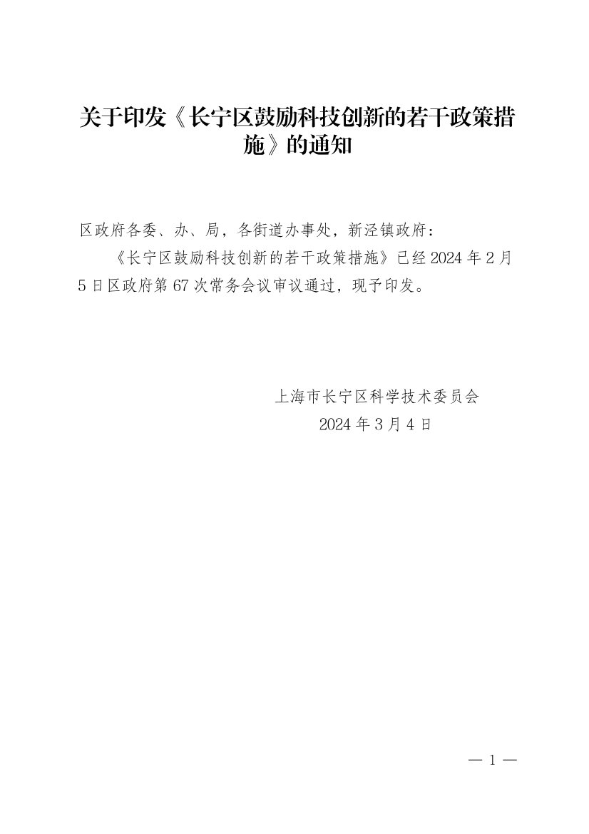 關(guān)于印發(fā)《長寧區(qū)鼓勵(lì)科技創(chuàng)新的若干政策措施》的通知