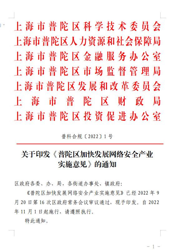 關(guān)于印發(fā)《普陀區(qū)加快發(fā)展網(wǎng)絡(luò)安全產(chǎn)業(yè)實(shí)施意見(jiàn)》的通知