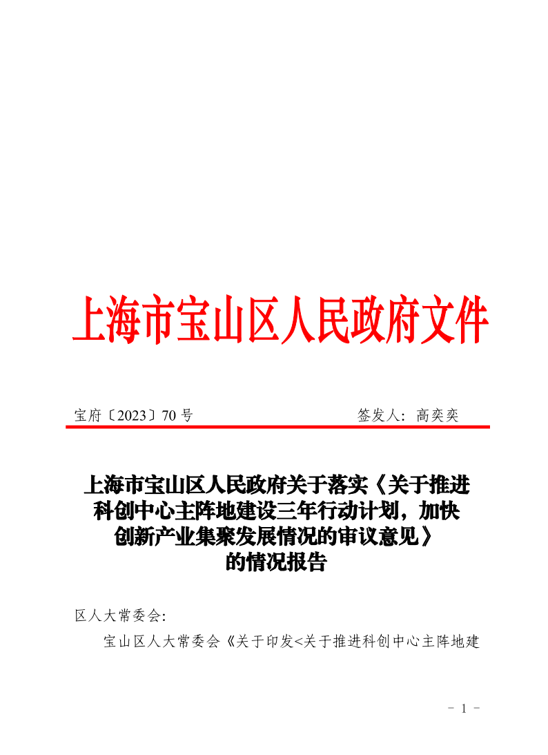 ??寶山區(qū)人大常委會(huì)《關(guān)于印發(fā)<關(guān)于推進(jìn)科創(chuàng)中心主陣地建設(shè)三年行動(dòng)計(jì)劃,加快創(chuàng)新產(chǎn)業(yè)集聚發(fā)展情況的審議意見>的通知》(寶會(huì)〔2022〕36號)收悉。區(qū)政府領(lǐng)導(dǎo)高度重視,相關(guān)單位積極查找對標(biāo),在產(chǎn)業(yè)結(jié)構(gòu)、配套環(huán)境、資源聚集、頂層設(shè)計(jì)等方面加快推進(jìn)科創(chuàng)工作開展,現(xiàn)將情況報(bào)告如下: