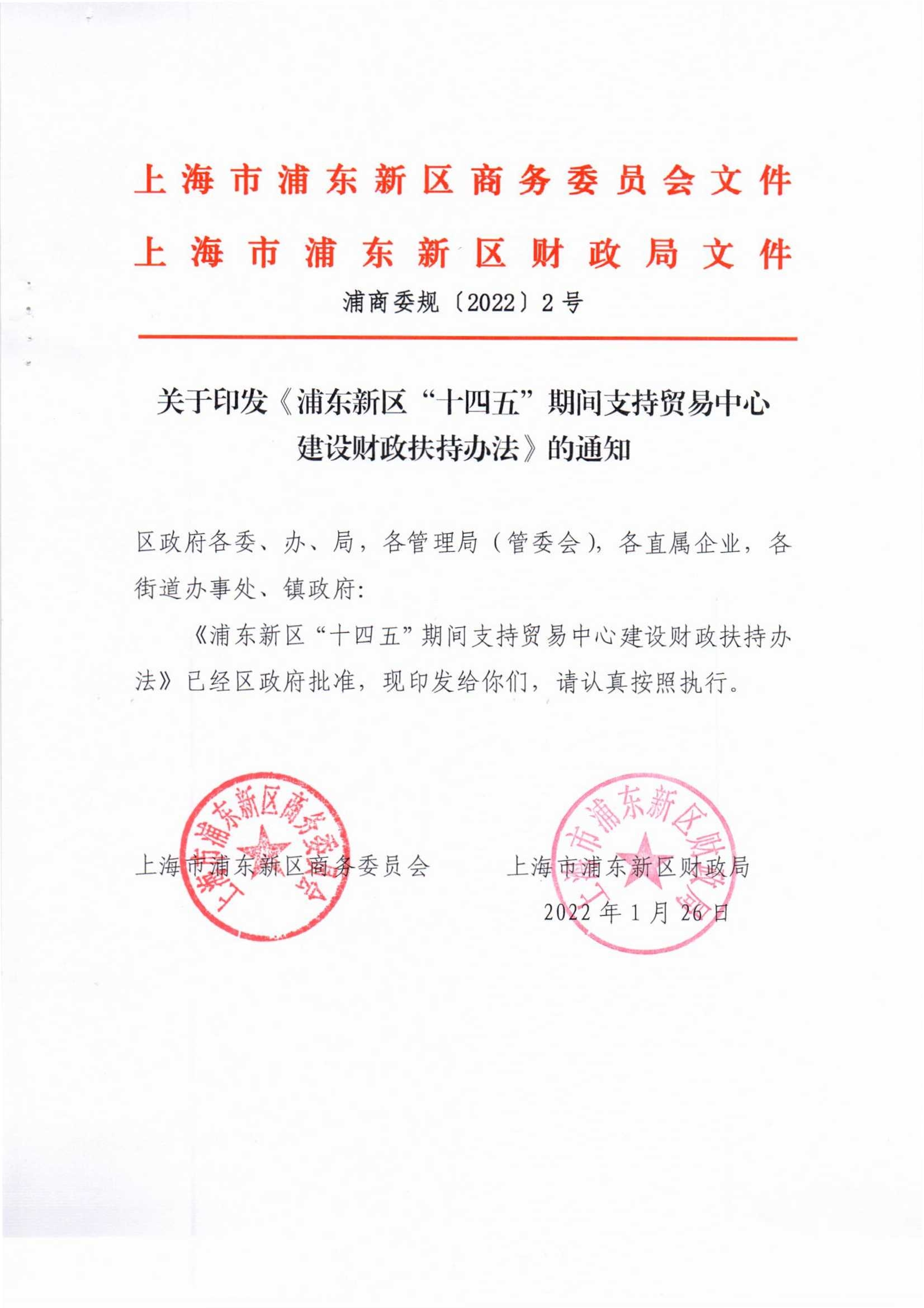 ??《浦東新區(qū)“十四五”期間支持貿(mào)易中心建設財政扶持辦法》已經(jīng)區(qū)政府批準,現(xiàn)印發(fā)給你們,請認真按照執(zhí)行。