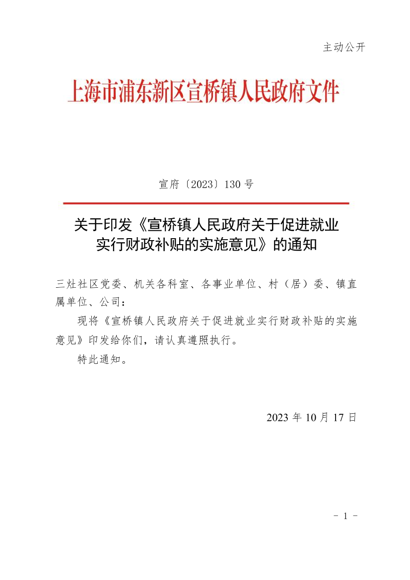 宣橋鎮(zhèn)人民政府關(guān)于促進(jìn)就業(yè)實(shí)行財(cái)政補(bǔ)貼的實(shí)施意見