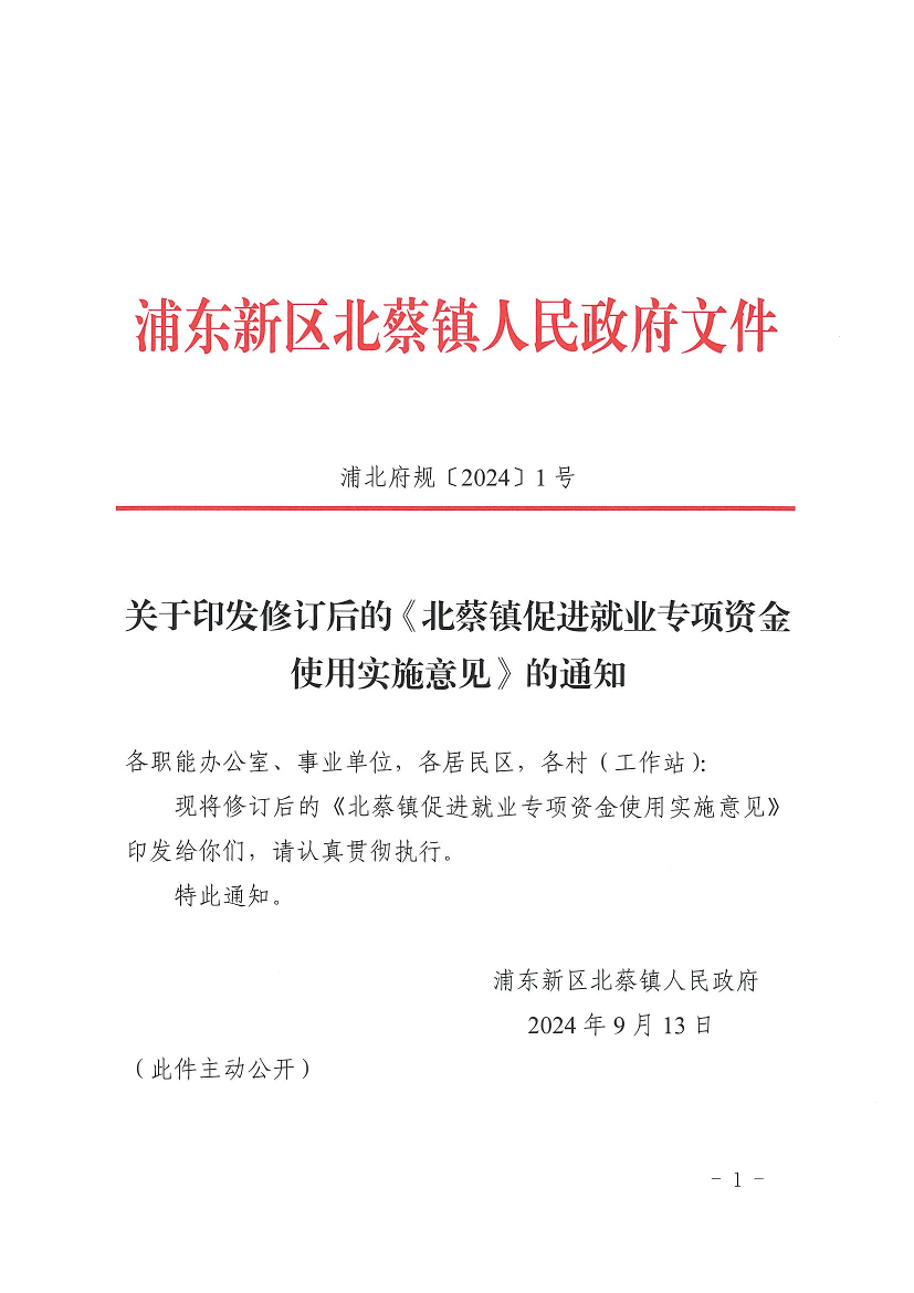 關(guān)于印發(fā)修訂后的《北蔡鎮(zhèn)促進(jìn)就業(yè)專(zhuān)項(xiàng)資金使用實(shí)施意見(jiàn)》的通知