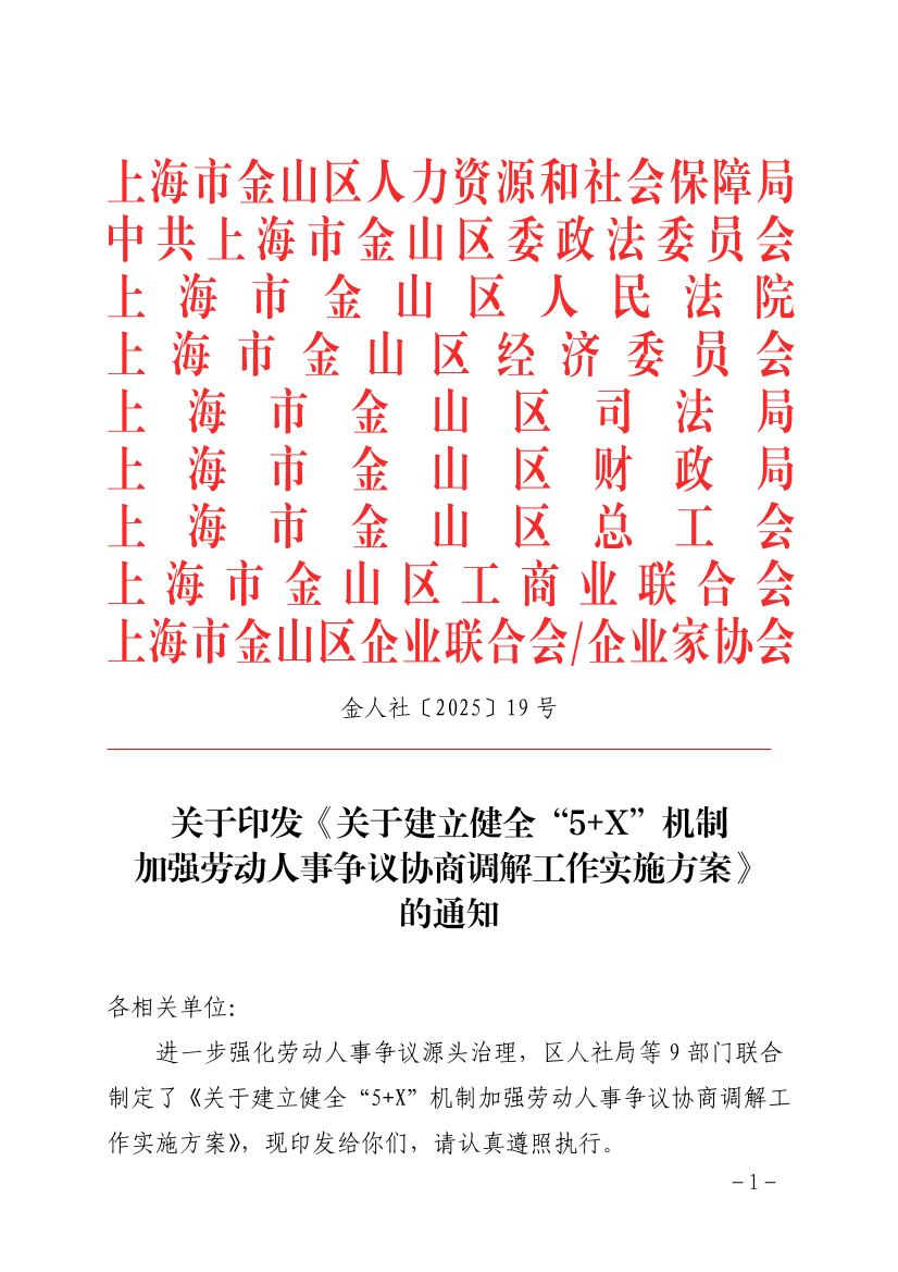 ??進(jìn)一步強(qiáng)化勞動(dòng)人事爭議源頭治理, 區(qū)人社局等9部門聯(lián)合制定了《關(guān)于建立健全“5+X”機(jī)制加強(qiáng)勞動(dòng)人事爭議協(xié)商調(diào)解工作實(shí)施方案》,現(xiàn)印發(fā)給你們,請認(rèn)真遵照執(zhí)行。