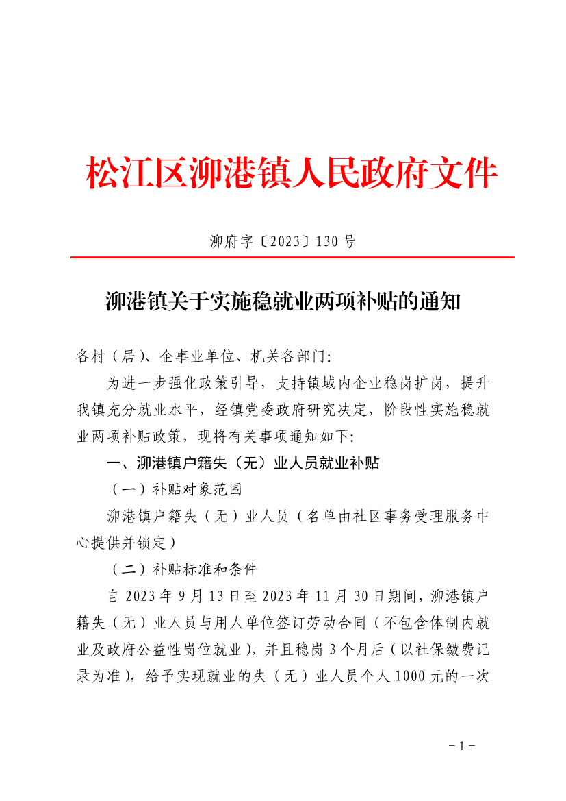 泖港鎮(zhèn)關于實施穩(wěn)就業(yè)兩項補貼的通知