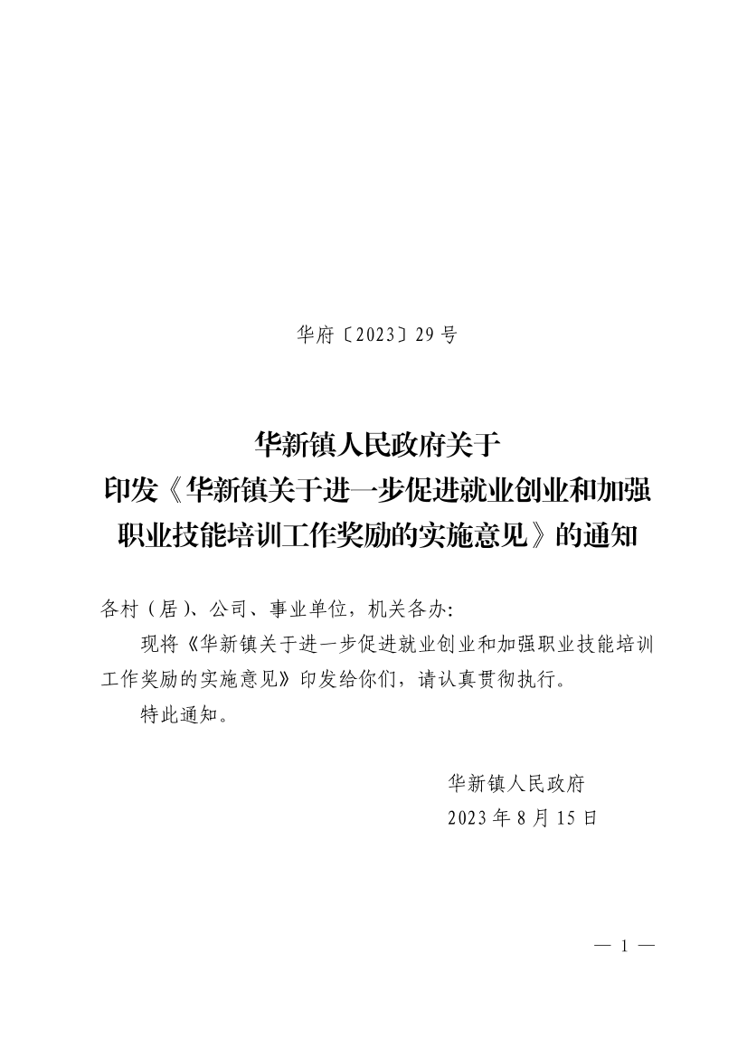 華新鎮(zhèn)關(guān)于進(jìn)一步促進(jìn)就業(yè)創(chuàng)業(yè)和加強(qiáng)職業(yè)技能培訓(xùn)工作獎(jiǎng)勵(lì)的實(shí)施意見