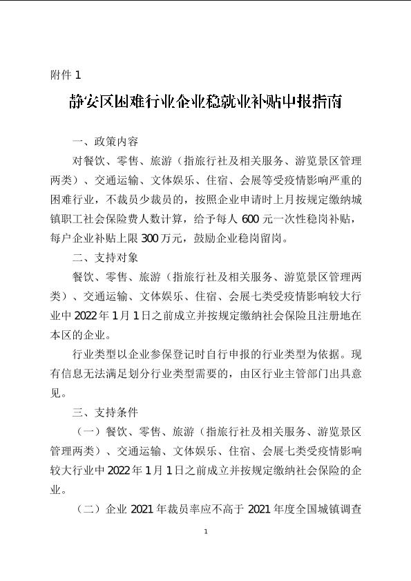 ??1.靜安區(qū)困難行業(yè)企業(yè)穩(wěn)就業(yè)補貼項目申報指南