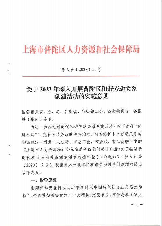 ??為進(jìn)一步推進(jìn)新時(shí)代和諧勞動(dòng)關(guān)系創(chuàng)建活動(dòng)(以下簡(jiǎn)稱“創(chuàng)建活動(dòng)”),完善勞動(dòng)關(guān)系的源頭治理,切實(shí)維護(hù)本市勞動(dòng)關(guān)系的和諧穩(wěn)定,根據(jù)市人社局、市總工會(huì)、市企聯(lián)、市工商聯(lián)下發(fā)的《上海市人力資源和社會(huì)保障局等四部門關(guān)于印發(fā)<關(guān)于推進(jìn)新時(shí)代和諧勞動(dòng)關(guān)系創(chuàng)建活動(dòng)的操作指引>的通知》(滬人社關(guān)〔2023〕19號(hào)),現(xiàn)就深入開(kāi)展本區(qū)和諧勞動(dòng)關(guān)系創(chuàng)建活動(dòng)提出以下意見(jiàn)。