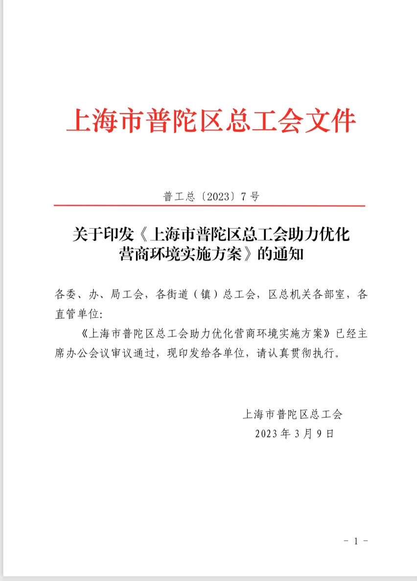 上海市普陀區(qū)總工會助力優(yōu)化營商環(huán)境實(shí)施方案