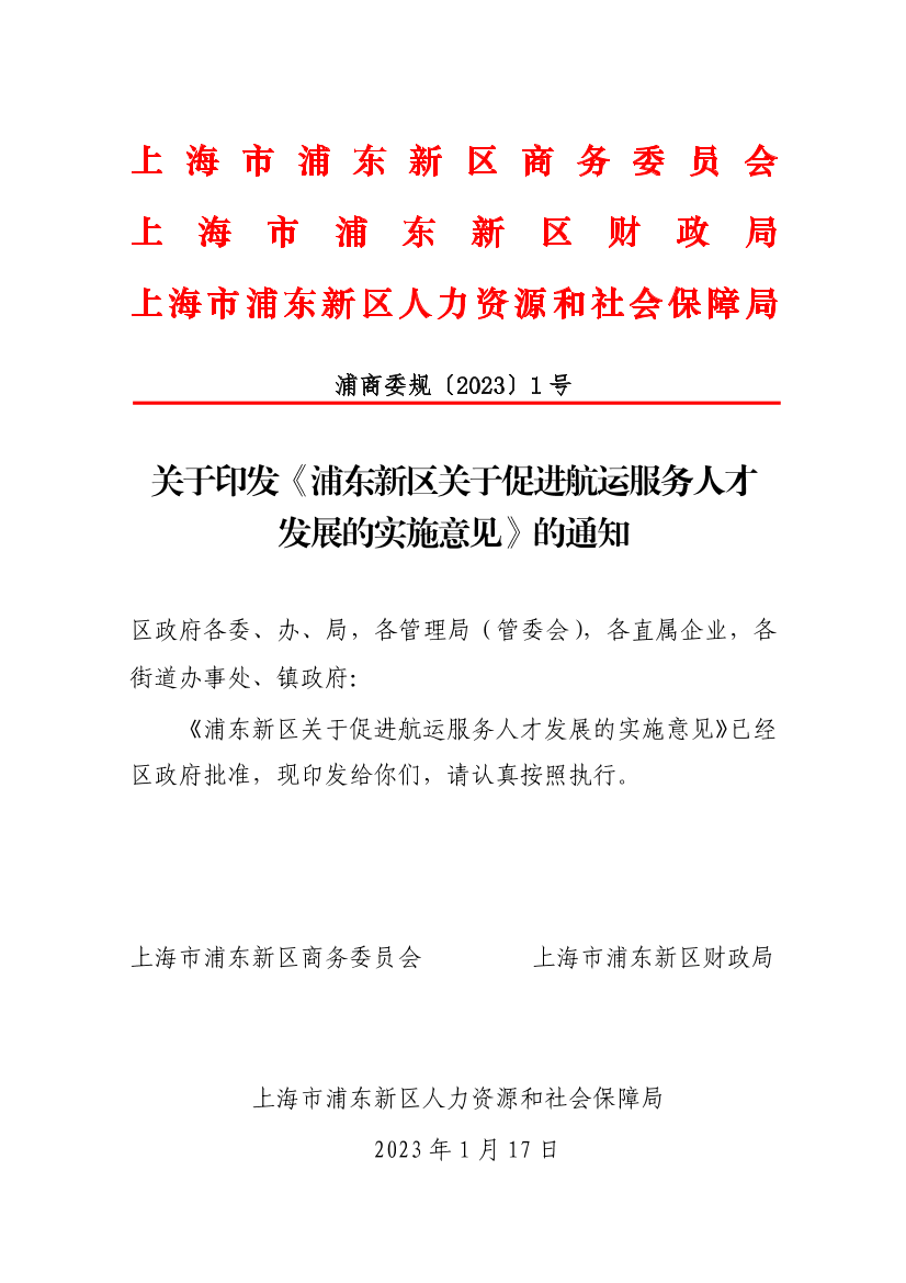 浦東新區(qū)關于促進航運服務人才發(fā)展的實施意見