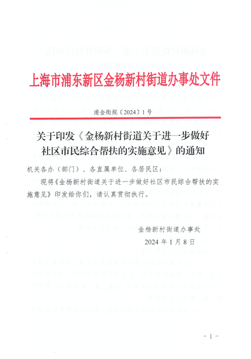 金楊新村街道關(guān)于進(jìn)一步做好社區(qū)市民綜合幫扶的實施意見