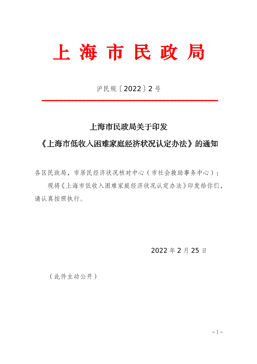 ??現(xiàn)將《上海市低收入困難家庭經(jīng)濟狀況認定辦法》印發(fā)給你們,請認真按照執(zhí)行。