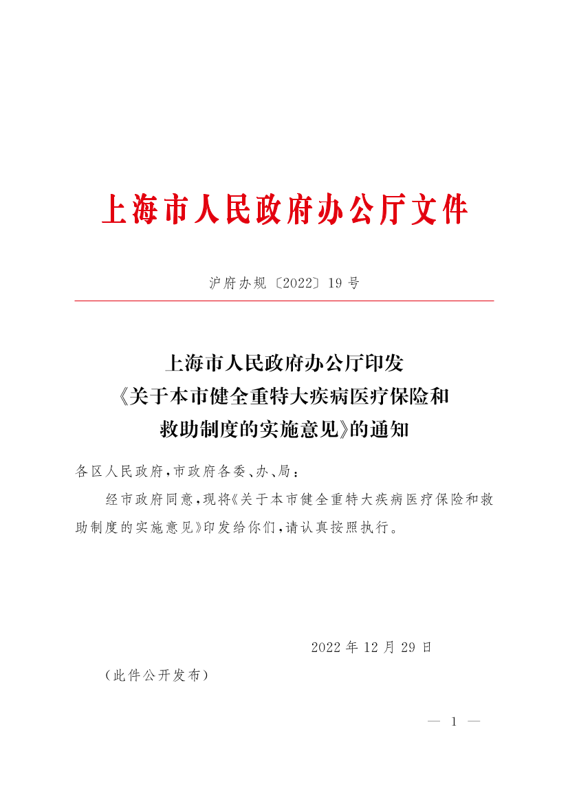 上海市人民政府辦公廳印發(fā)《關于本市健全重特大疾病醫(yī)療保險和救助制度的實施意見》的通知