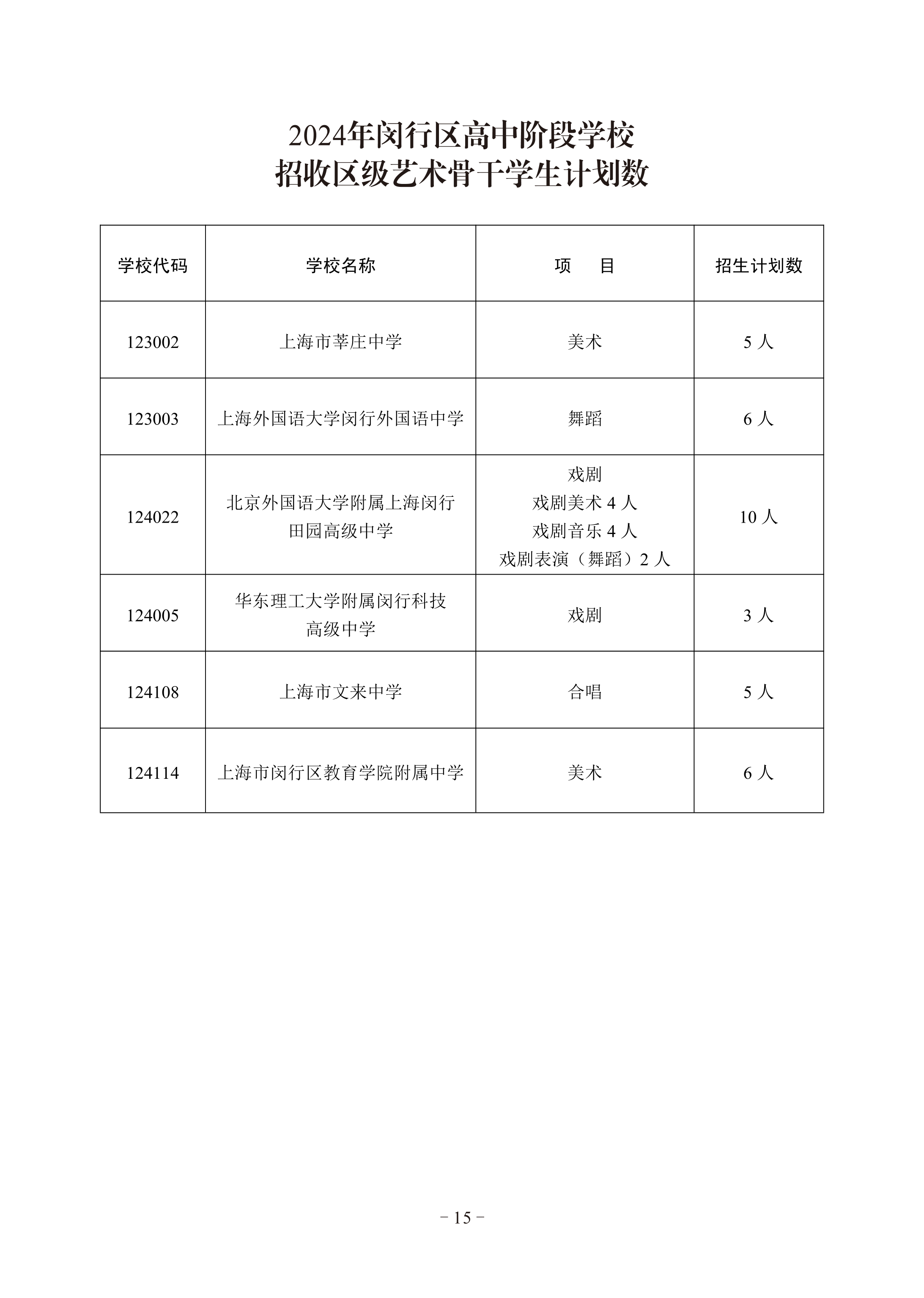 2024年閔行區(qū)高中階段學(xué)校招收區(qū)級(jí)藝術(shù)骨干學(xué)生、優(yōu)秀體育學(xué)生計(jì)劃