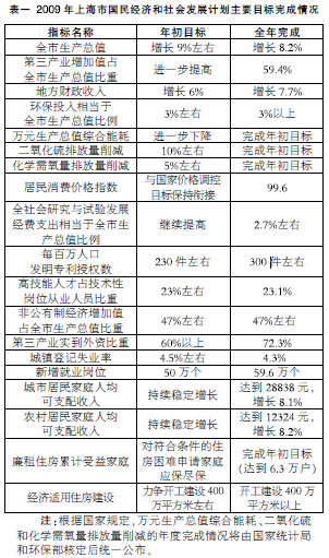 一、2009年上海市國民經(jīng)濟和社會發(fā)展計劃執(zhí)行情況