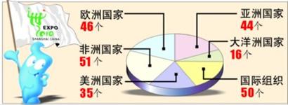 世博會運營籌備工作進(jìn)展順利。242個國家和國際組織確認(rèn)參展(見圖4),為歷屆世博會之最;國內(nèi)31個省區(qū)市以及港澳臺地區(qū)簽署了參展協(xié)議。網(wǎng)上世博會順利開通。運營準(zhǔn)備全面展開,世博安保、交通組織、接待服務(wù)等保障工作抓緊推進(jìn),世博志愿者報名人數(shù)超過50萬人。在20多個國家和地區(qū),以及國內(nèi)各省市、港澳臺地區(qū)開展了世博推介活動,“走進(jìn)世博會”全國巡展參觀人數(shù)近300萬人次。世博會門票銷售已超過1600萬張。