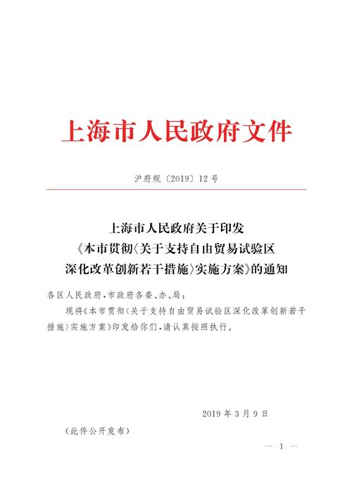 為貫徹國務院印發(fā)的《關于支持自由貿易試驗區(qū)深化改革創(chuàng)新若干措施》(國發(fā)〔2018〕38號)的精神,推動中國(上海)自由貿易試驗區(qū)(以下簡稱“上海自貿試驗區(qū)”)在新的起點上實現(xiàn)更高質量的發(fā)展,推進上海自貿試驗區(qū)與全市改革聯(lián)動,結合實際,制定本實施方案。